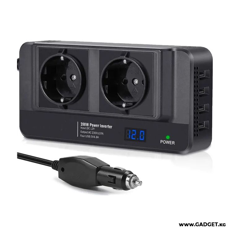 Инвертор автомобильный (преобразователь) с 12В/24В на 220В Power Inverter 8300 200W 4USB - оснащен мощностью 200 Вт, поэтому может одновременно питать несколько устройств.