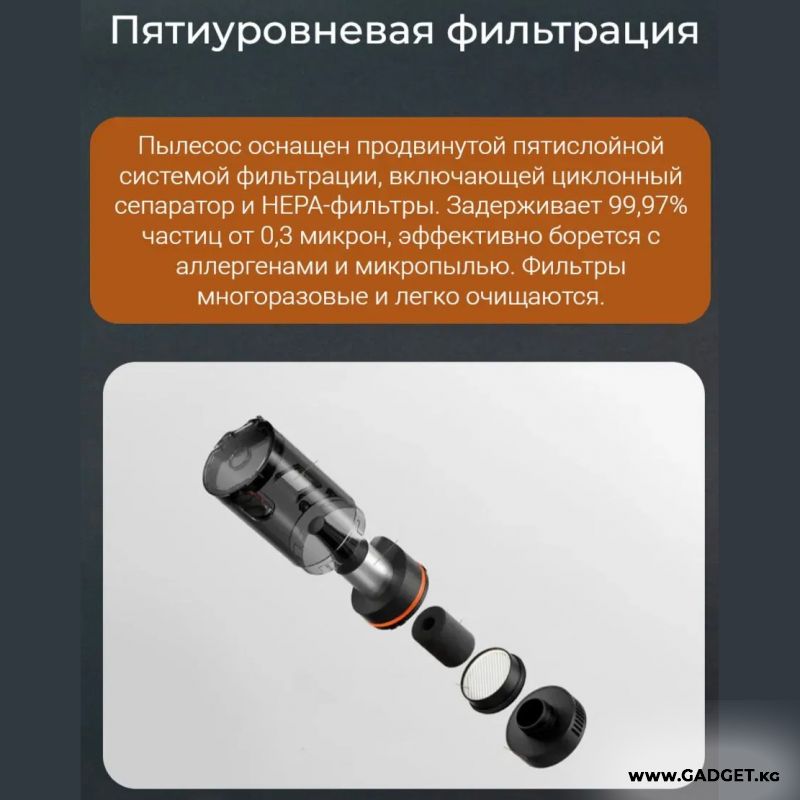 Mijia Car Vacuum Cleaner — это компактный и мощный автомобильный пылесос, который станет незаменимым помощником в поддержании чистоты как в салоне автомобиля, так и в домашних условиях. Благодаря высокой мощности всасывания и многоступенчатой системе фильтрации, устройство эффективно удаляет пыль и мусор, предотвращая их повторное попадание в воздух. Встроенный аккумулятор обеспечивает продолжительное время работы, что делает пылесос удобным и практичным в использовании.