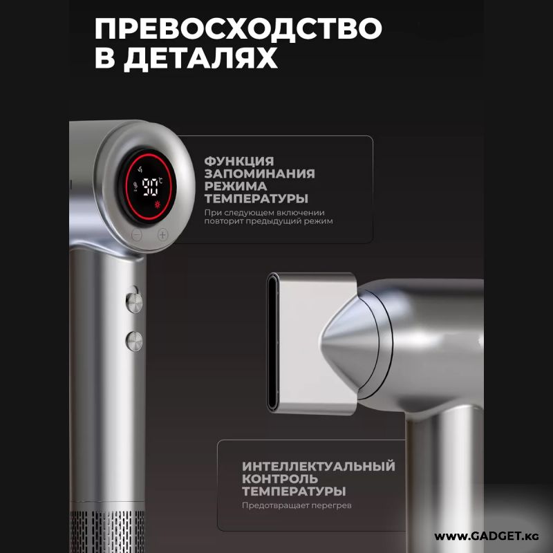 High speed Hair dryer MG-02 - это инновационный бесщеточный фен мощностью 1600 ватт, который станет идеальным помощником в уходе за волосами. С этим феном у вас будет возможность выбирать из 12 температурных режимов, которые подойдут для всех типов волос - от щадящей сушки до стойкой укладки.
