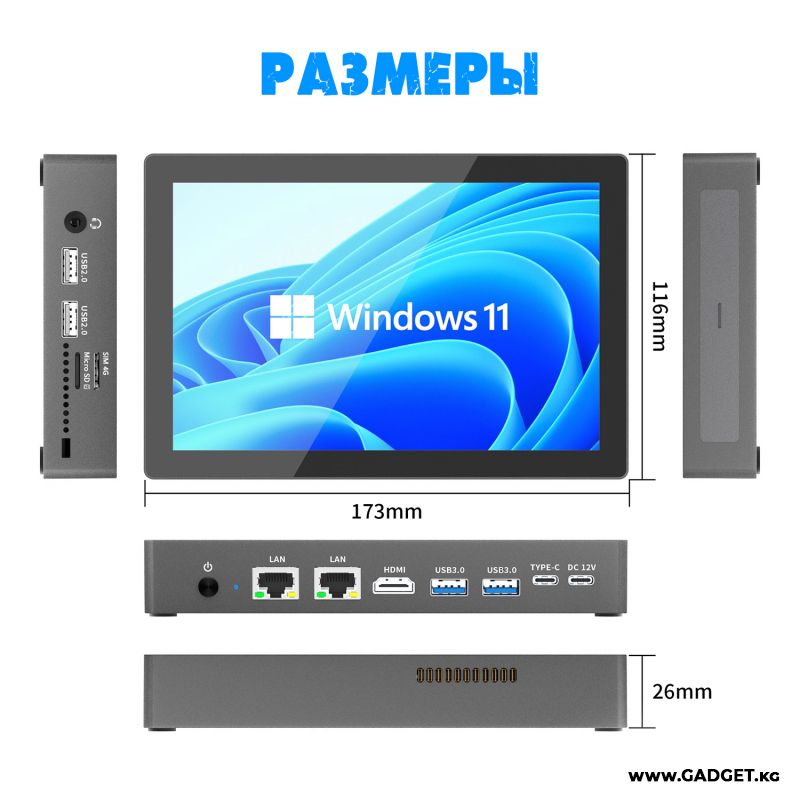 Компактный «всё‑в‑одном» компьютер, который сочетает в себе мощность настольного ПК и удобство сенсорного дисплея. 7‑дюймовый экран позволяет управлять приложениями без мыши, а предустановленная Windows 11 обеспечивает знакомый интерфейс и поддержку привычных программ — от офисных пакетов до специализированного софта.