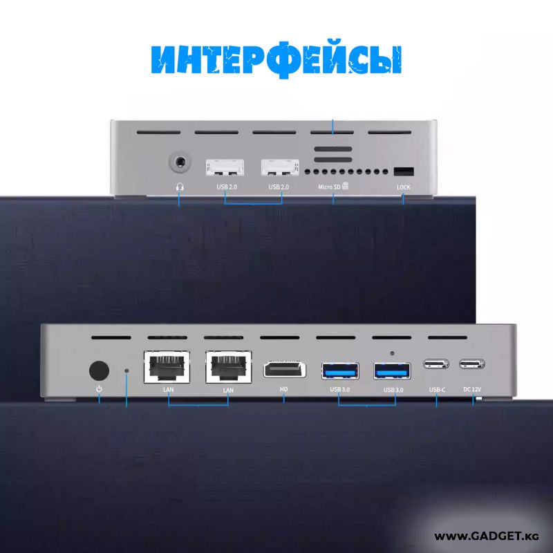 - Богатый набор портов: подключайте периферию, сетевые устройства и накопители — есть всё необходимое (USB, Ethernet, аудио и др.).
