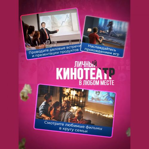 Это мультимедийное устройство подарит вам множество впечатлений и эмоций. Видеопроектор - это идеальный подарок для детей и взрослых. Включите ваши любимые фильмы, фотографии или презентации и создайте незабываемый опыт просмотра с нашим мини проектором.