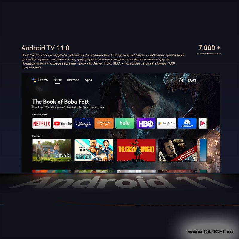 Проектор работает на базе Android TV 11.0, что открывает доступ к тысячам приложений и сервисов. Благодаря встроенному Google Play вы легко сможете устанавливать YouTube, Netflix, Disney+, Spotify и другие приложения для развлечений и обучения. Важным преимуществом является поддержка DRM Widevine L1, позволяющая смотреть контент из потоковых сервисов в максимальном качестве.