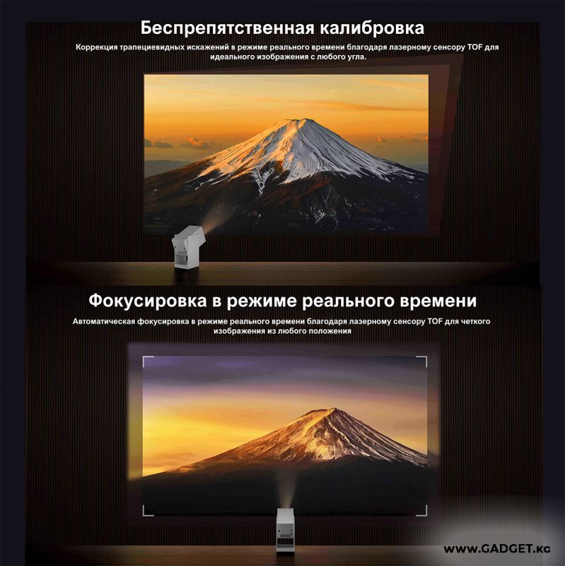 Одним из ключевых преимуществ Wanbo Cube 2 Pro является автоматическая коррекция трапеции. Благодаря этой функции проектор самостоятельно выравнивает изображение, если оно стоит не под прямым углом к поверхности. Также в работе используется современная технология ToF – сенсор, измеряющий расстояние и угол падения света с высокой точностью. В отличие от стандартных систем, ToF мгновенно анализирует пространство и обеспечивает максимально точную настройку даже при сложных условиях проекции. Благодаря этому Wanbo Cube 2 Pro автоматически подстраивает изображение в считанные секунды – без необходимости ручного вмешательства.