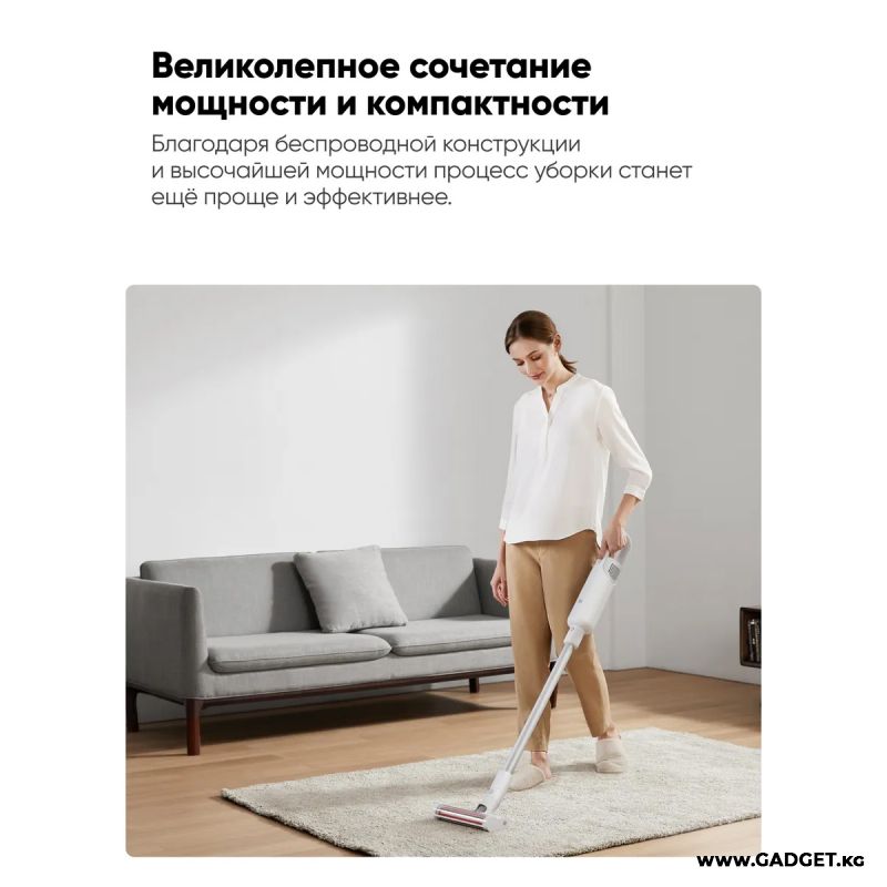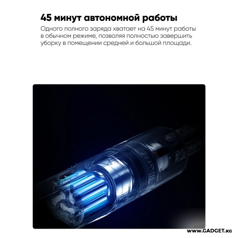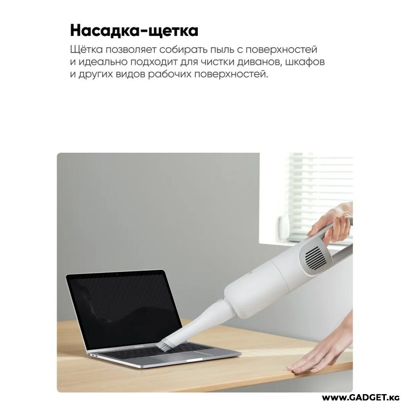 Беспроводной пылесос обладает легкой и разборной конструкцией, а все его составляющие можно легко помыть обычной водой. В комплекте поставляются две насадки для универсального применения прибора. Встроенный бесщеточный двигатель обеспечивает мощное всасывание 17000 Па. Поддерживается 2 режима работы. На одном заряде устройство проработает 45 минут.