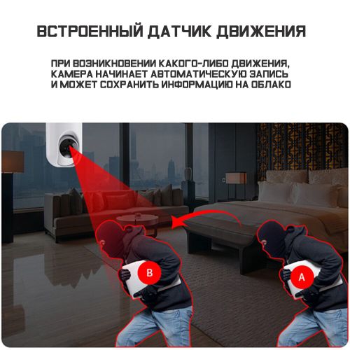 Камера обладает способностью включаться при обнаружении движения. При этом она отсылает сообщение о движении на смартфон владельца. В качестве накопителя для IP камеры может быть использована карта памяти microSD. Запись данных на карту начинается в те моменты, когда камера обнаруживает движение.