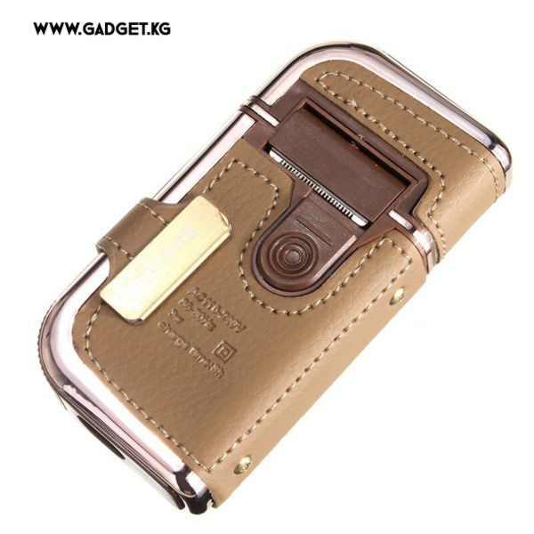 Стоит сказать пару слов и о превосходном исполнении корпуса бритвы. Корпус имеет отделку из высококачественного заменителя кожи благородного цвета кофе с молоком.
