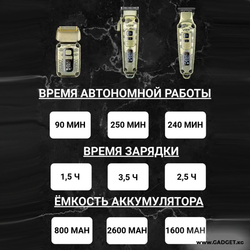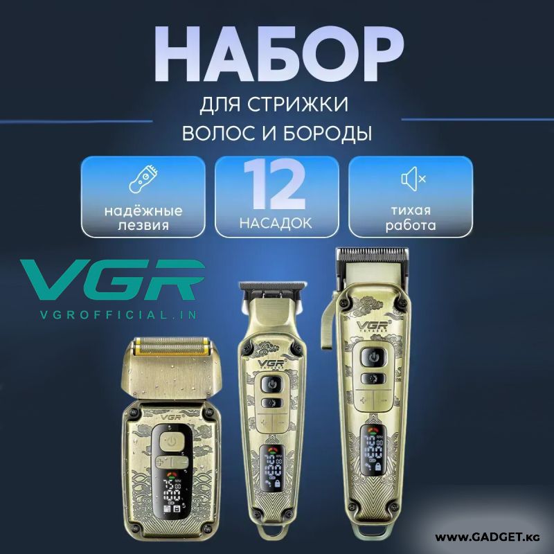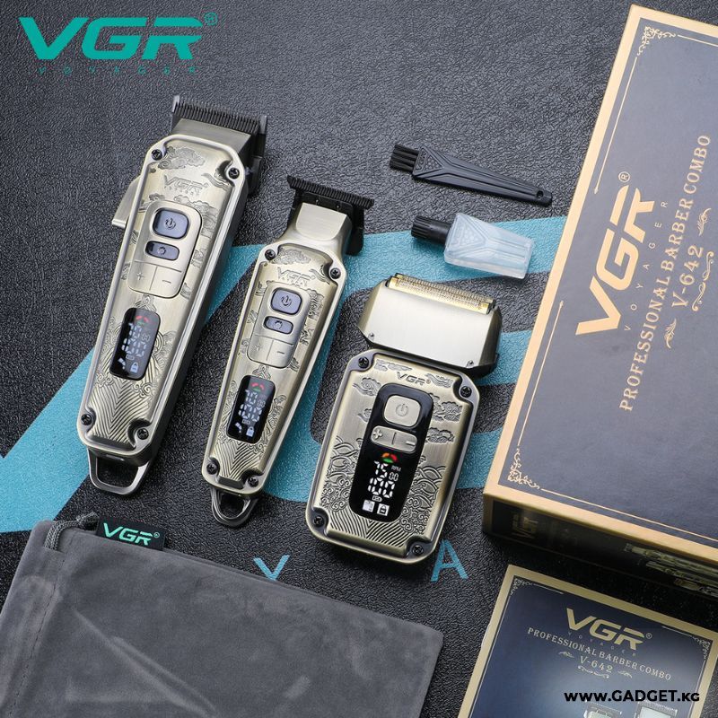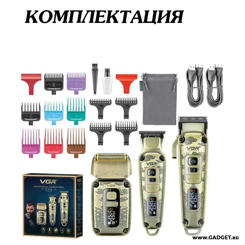 Профессиональный набор 3 в 1 для стрижки волос, бороды и усов VGR - 642 состоит из трех полноценных профессиональных инструментов с множеством насадок для каждого: