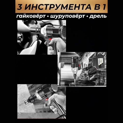 Покупая данный товар вы покупайте сразу 3 незаменимых инструмента! Мечта любого человека. Гайковерт – это электрический инструмент, который используется для закручивания и откручивания гаек и винтов.