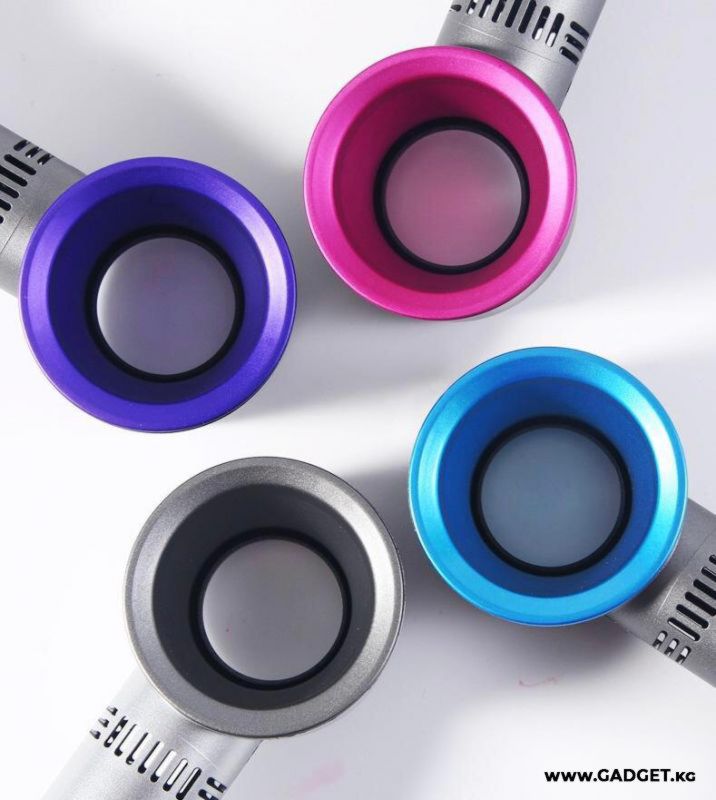 Стильный портативный безлопастный вентилятор. Эффективно охлаждает воздух, так как действует по технологии многократного усиления воздушного потока: создает сильный и равномерно обдувающий ветерок. Имеет три режима обдува. Подойдет для дома и офиса. Совершенно безопасен: нет лопастей — нет опасности травм, практически бесшумен. Работает от встроенного аккумулятора, заряжается с помощью USB кабеля.
