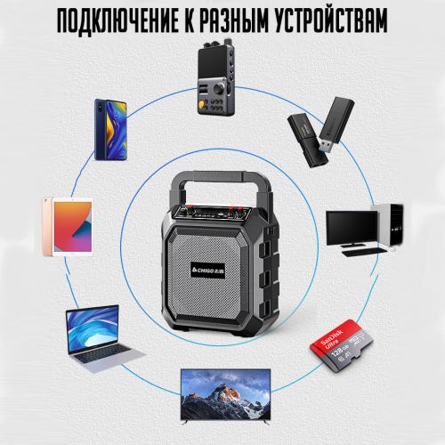 Беспроводная караоке система Chigo M63 - это новинка представляющая из себя стильную и качественную беспроводную колонку с двумя микрофонами в комплекте.
