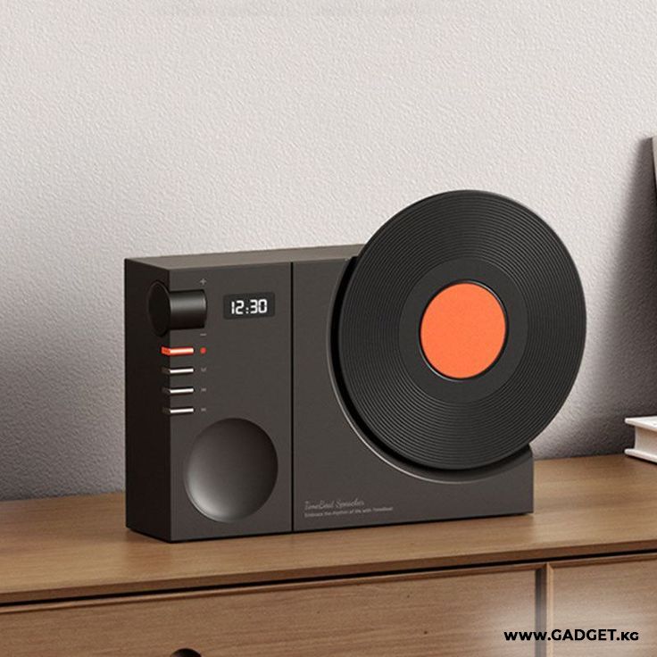 Элементы управления оформлены в минималистичном стиле, а декоративный “виниловый диск” придает устройству особую харизму — оно выглядит как произведение искусства.