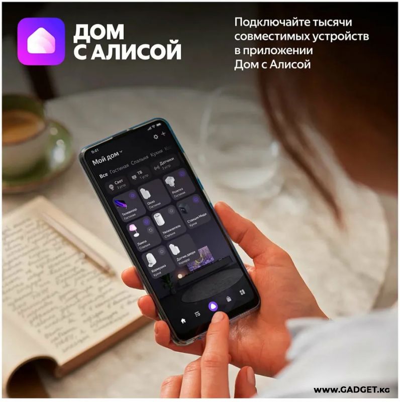 Станция интегрируется в систему «Умный дом» благодаря встроенному Zigbee-хабу. Она также оснащена камерой с углом обзора 120° для видеозвонков и защитной шторкой. Контурная LED-подсветка придает колонке стильный вид.