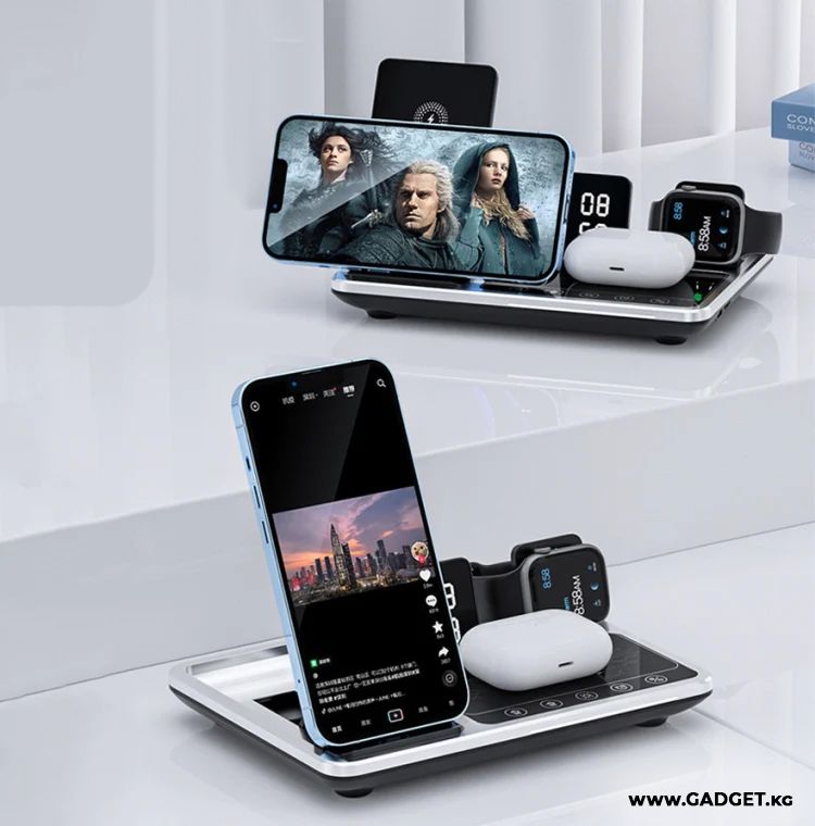 Док-станция 3в1 Wireless Charger R11, беспроводная зарядка + электронные часы