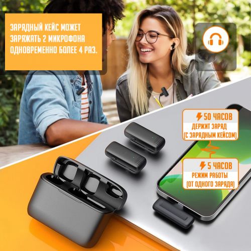 Двойной беспроводной микрофон с зарядным кейсом (петличка) J13 для смартфона на iOS (lightning)