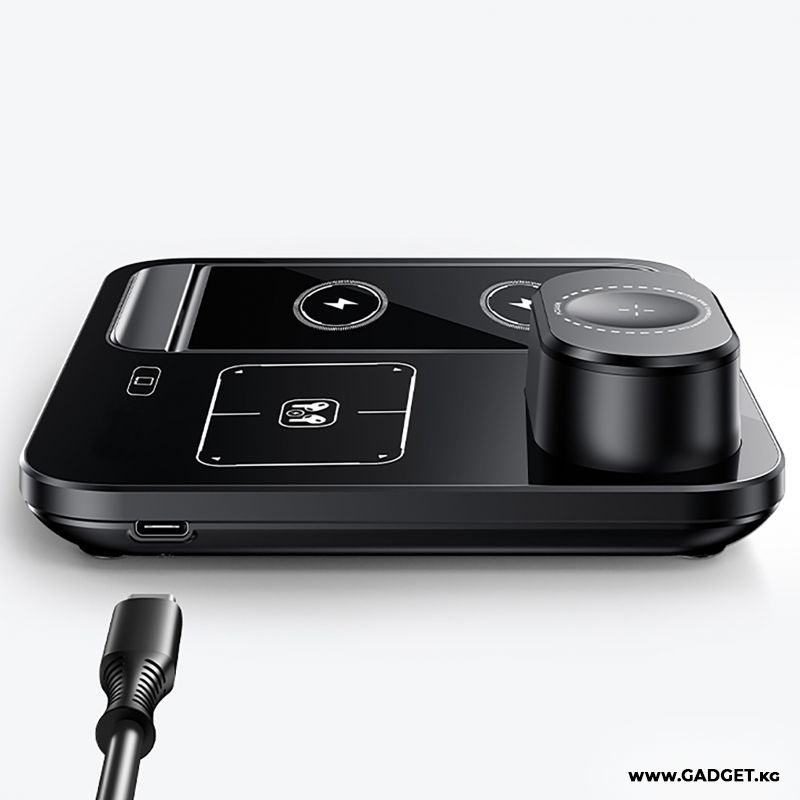 Зарядная станция 3в1 Wireless Charger R13 позволяет заряжать три подключенных девайса одновременно - смартфон с поддержкой беспроводной зарядки, смарт часы Apple Watch и кейс для AirPods. Также она поддерживает возможность быстрой зарядки смартфона, и обладает электронным открывающимся механизком. Выгодно отличается качественными материалами, стильным дизайном, прочностью и простотой установки.