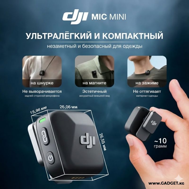 DJI Mic Mini – это ультракомпактная беспроводная система записи звука, разработанная для создателей контента. Она поддерживает проводное и беспроводное подключение к DSLR и беззеркальным камерам, смартфонам, ноутбукам и даже дронам DJI Neo. Подключение осуществляется через Type-C, 3.5 мм TRS, Bluetooth 5.2 или 2.4 ГГц цифровую передачу, обеспечивая стабильное соединение на расстоянии до 400 м