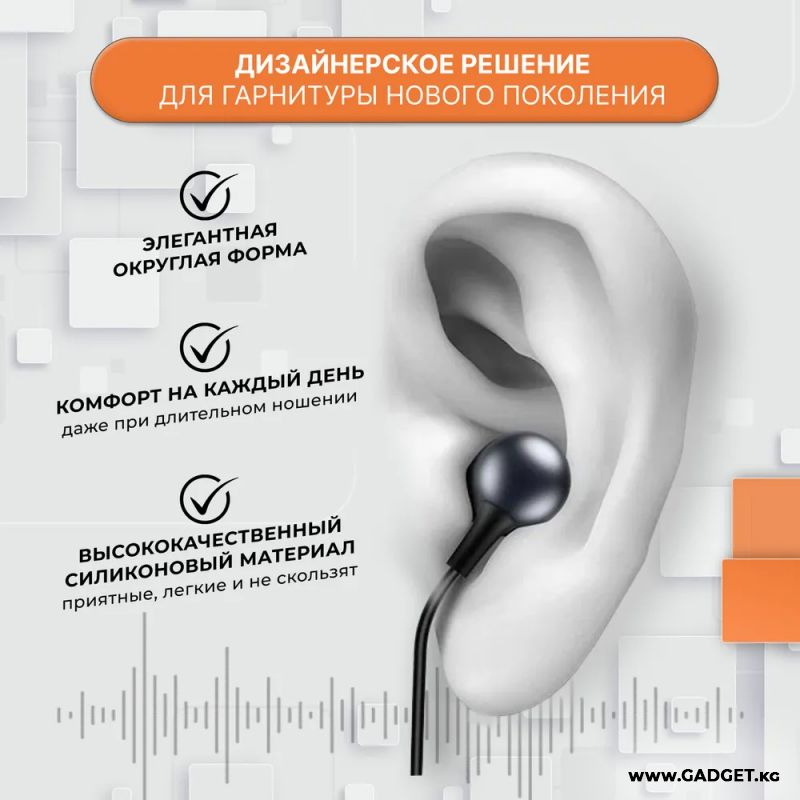 Звук в таких наушниках, не рассеиваясь, идет прямо в слуховой канал. А благодаря оригинально изогнутым качественным силиконовым насадкам, наушники хорошо блокируют посторонние шумы.