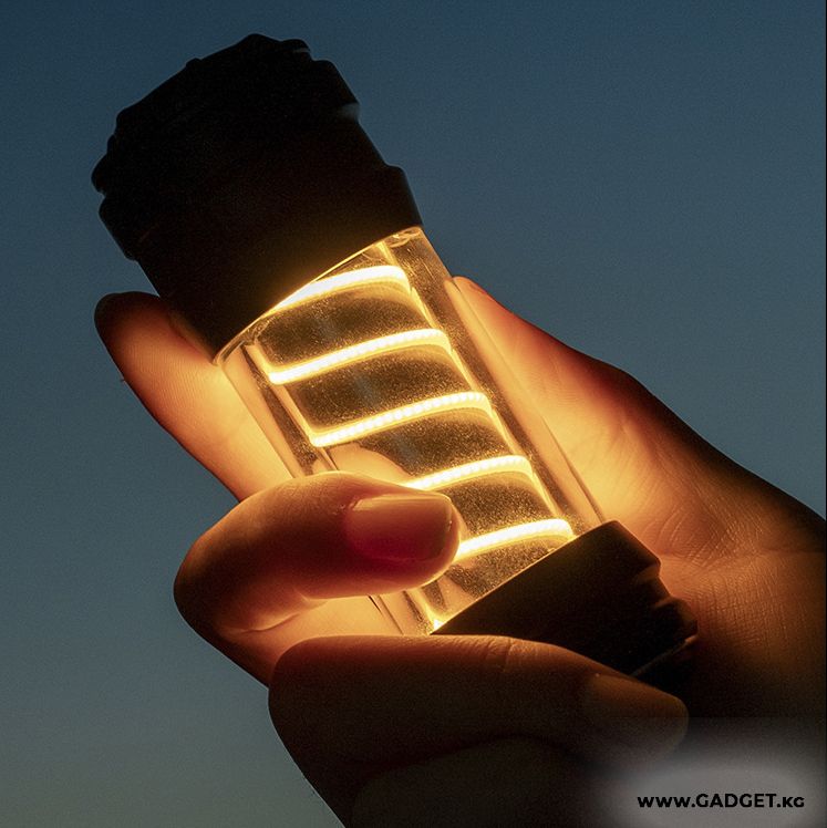 Универсальный походный фонарик 2-в-1 – это не просто источник света, а уют и безопасность в любом месте. Компактный, лёгкий и очень яркий, он сочетает в себе два режима освещения: мощный направленный свет фонарика и тёплую амбиентную подсветку в виде оранжевой спирали внутри корпуса.