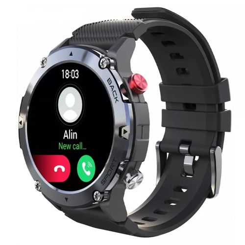Это носимое устройство представляет собой спортивные умные часы с прочным корпусом и 1,32-дюймовым IPS-экраном защищенным стеклом Corning Gorilla Glass, с разрешением 360 x 360 пикселей., оснащенные множеством функций, включая монитор сердечного ритма, монитор кислорода в крови, мультиспортивные режимы, водонепроницаемость IP68 и поддержку вызовов Bluetooth.