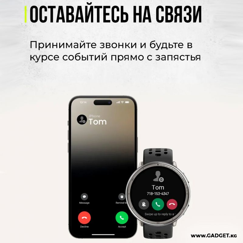 Отвечайте на входящие звонки или совершайте исходящие вызовы, управляйте камерой и музыкой вашего телефона, синхронизируйте уведомления и многое другое — все это через Bluetooth-подключение к вашему телефону