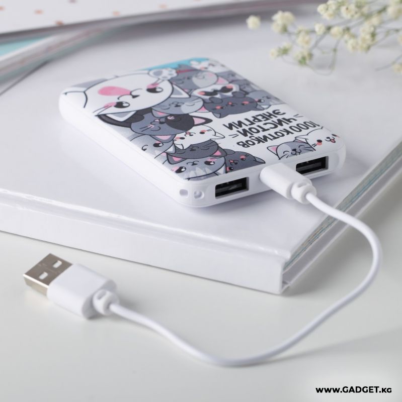 Портативный аккумулятор, «1000 котиков чистой энергии» 5000 mAh, 2 USB-разъёма