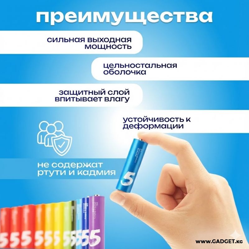 Пальчиковые батарейки - главный сопутствующий товар для мелкой электроники дома, который всегда будет актуален. Представленный набор алкалиновых батареек типа АА в количестве 10 штук от суббренда Xiaomi порадует своей производительностью и эффективной работой. Они действительно мощные - 1,6 Вольт и отличаются увеличенной емкостью при прежних привычных размерах самой батареи. Каждый элемент питания снаружи имеет цельную стальную оболочку, сдерживающую давление, и особый слой, удерживающий влагу.