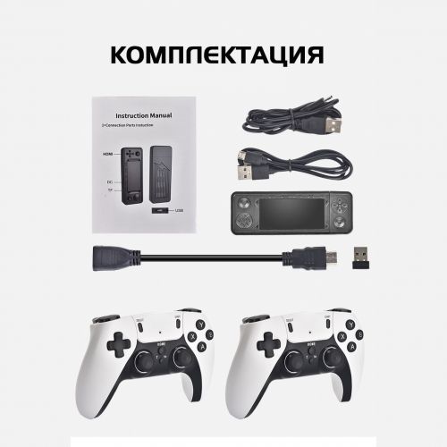С игровой приставкой в комплекте идут два беспроводных джойстика, а сама приставка поддерживает более 20 типов эмуляторов: Playstation 1/PSP/ATARI/Nintendo/Nintendo64/SEGA/SEGA Dreamcast и другие. Если вам не нравятся встроенные игры, вы можете закачать любимые игры на sd-карту и играть в них. Приставка позволит вспомнить детство с минимальными затратами. Так как в комплекте 2 беспроводных геймпада это означает, что радость можно будет разделить с ещё одним гурманом.