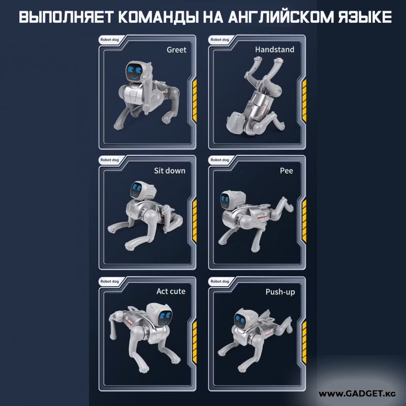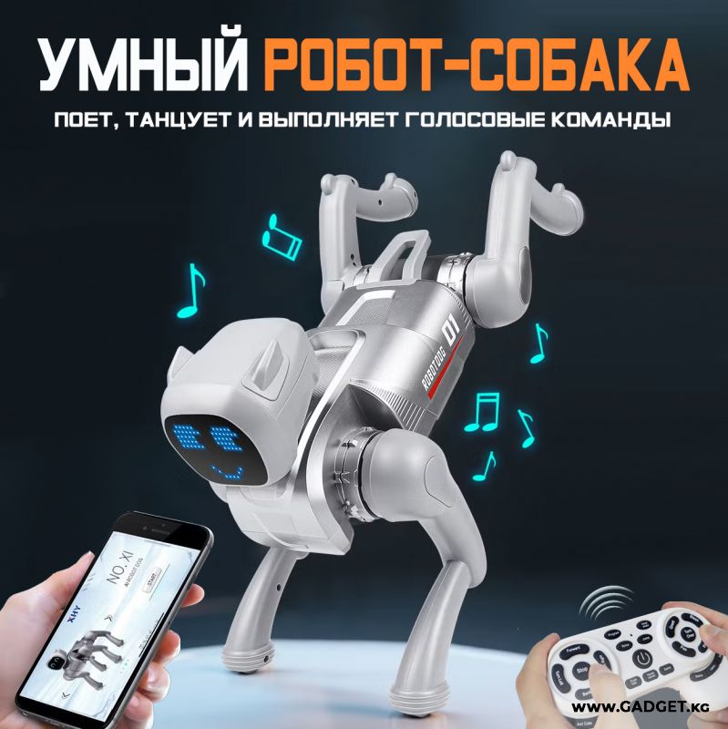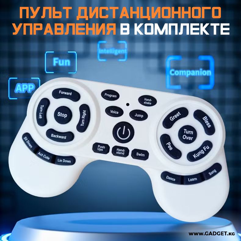 Интерактивная игрушка нового поколения, которая станет лучшим другом ребёнка и ярким героем домашних игр. Робот‑собака управляется с пульта дистанционного управления и со смартфона через мобильное приложение, реагирует на голосовые команды на английском языке, показывает эмоции на LED‑дисплее и выполняет эффектные трюки.