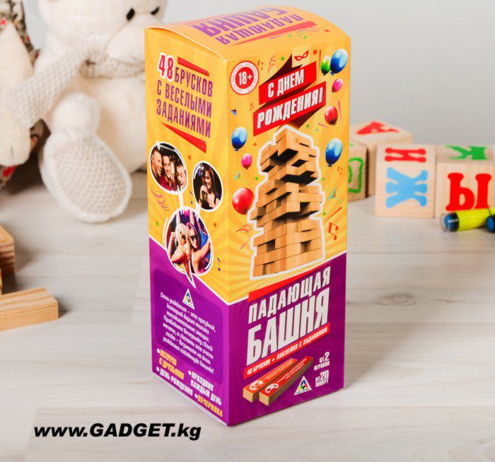 В чём секрет отличного дня рождения? В шумной толпе друзей и весёлых праздничных играх! Падающая башня создана для отвязной вечеринки! В наборе вы найдёте 54 деревянных бруска с заданиями, способными поднять настроение каждому! Поздравляйте и отрывайтесь на полную!