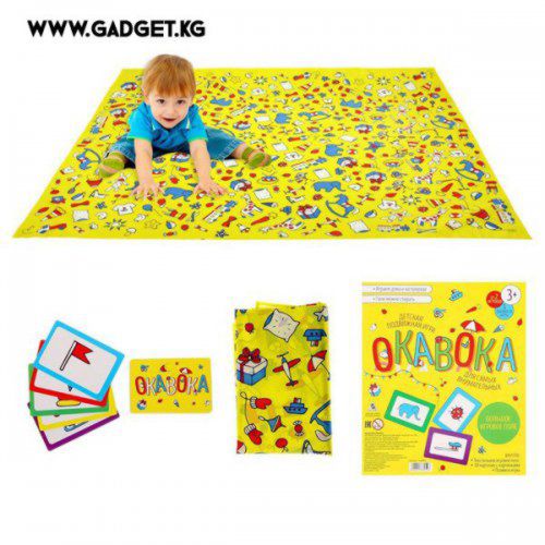 В правилах указаны три варианта игры. Находите на скорость рисунки с карточек, загадывайте картинку и изображайте её пантомимой или придумывайте слова, чтобы их искали другие участники. Эта игра очень динамичная и весёлая. А самая главная её особенность — огромное текстильное поле, которое можно постелить где угодно, а затем постирать в стиральной машине.