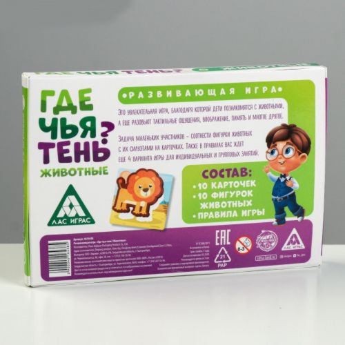 Попросите ребёнка взять любую фигурку. Что это за животное? Где оно живёт? Теперь нужно поместить фигурку на карточку, где нарисована её тень. Играйте до тех пор, пока на всех карточках не окажутся фигурки животных.