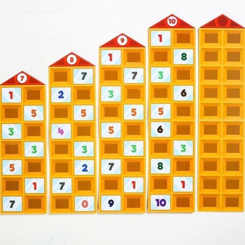 Все домики имеют 2 стороны, поэтому вы можете использовать обе. В некоторых окошках на одной стороне домиков есть цифры, на другой — они пустые. При изучении состава числа сначала поработайте с поверхностью, на которой домики частично заполнены цифрами. Проверить себя можно с помощью обратной стороны.