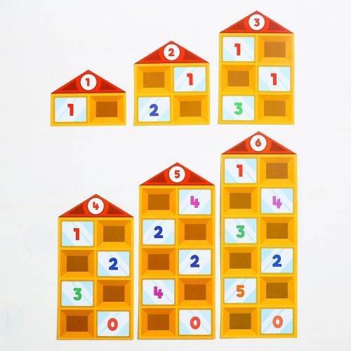 Также в наборе есть полностью пустой домик без цифры на крыше. Его используйте для изучения состава числа по точкам.