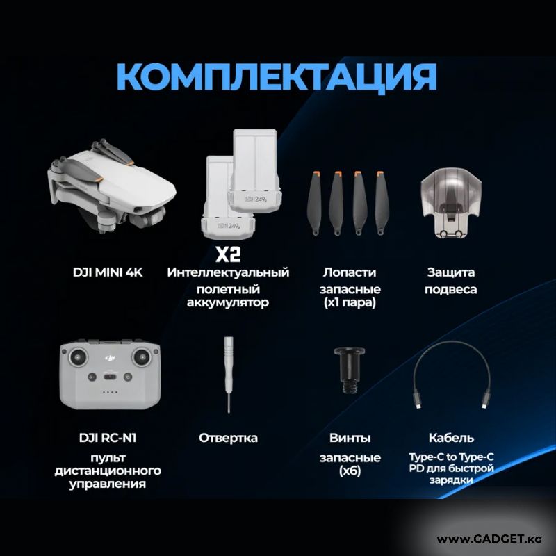 Квадрокоптер DJI Mini 4K (2 Аккумулятора, пульт)