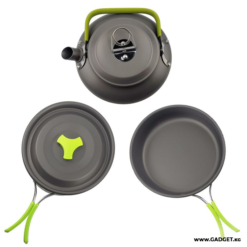 Данный набор посуды - это удобный и практичный вариант для различных путешествий и походов. Выделяется компактностью и практичностью, умещается в специальном мешочке, который также идет в комплекте с набором.