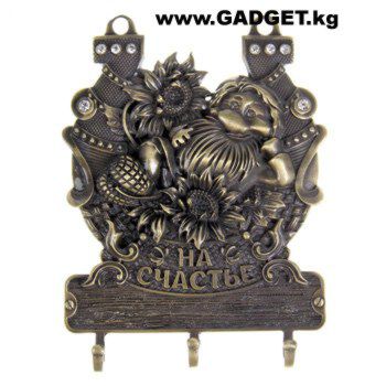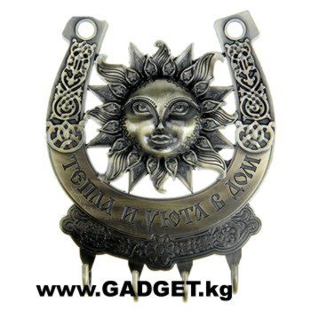 Ключница выполнена в виде подковы в эксклюзивном дизайне. На ней расположился добрый домовой с душевными пожеланиями. Как известно, домовой — действенный талисман для привлечения удачи, вдохновения и позитивной энергии в дом. На ключницу надёжно крепятся металлические крючки, а сама она легко монтируется на стену.