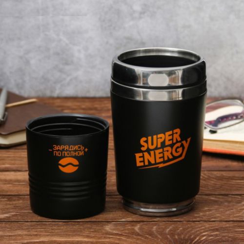 Термостакан без ручки 2 в 1 "Super energy", 350 мл